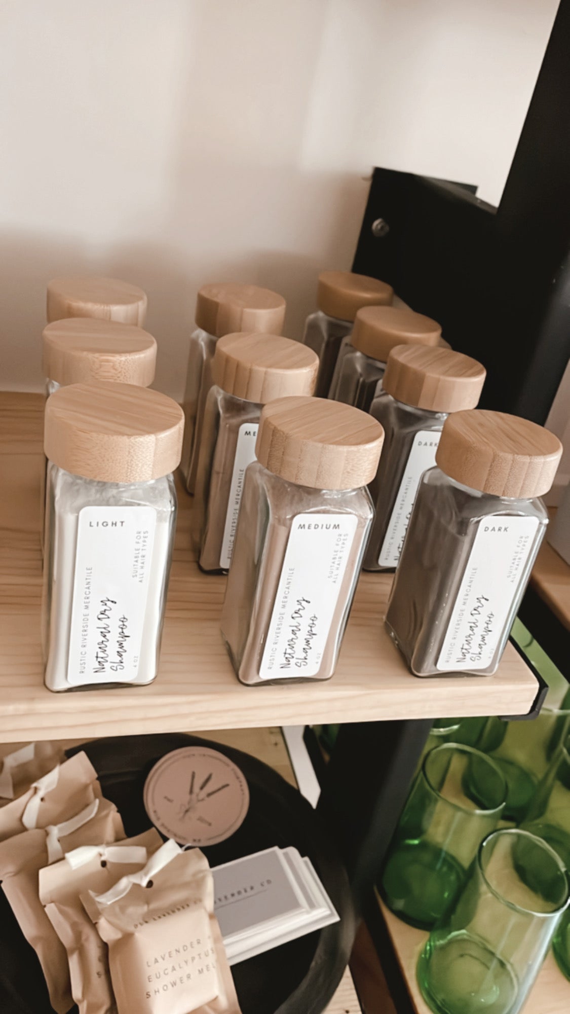 NATURAL HAIR SHAMPOOOur very own in house made Natural Dry Hair Shampoo. Ditch those toxic aerosol products for something more natural and almost all organic.