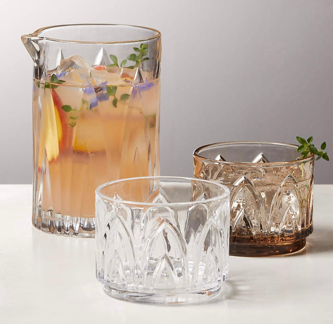 This old-fashioned glass is a stylish, vintage-inspired piece. It features delicate etching in detailed arches, while its footed base makes it easy to stack and store. Enjoy the classic look and feel of this low-riding glass.