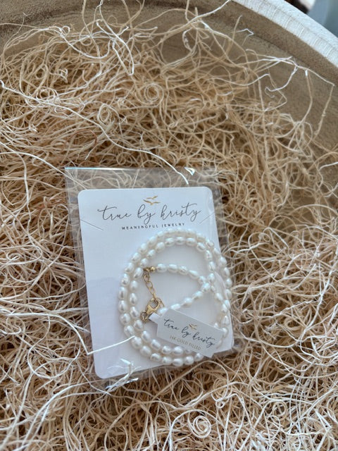 Indulge in elegance with Sea Isle Freshwater Rice Pearl Beaded Necklace. Handmade with genuine AA freshwater pearls and high quality 14k gold filled findings, this adjustable necklace is a stunning addition to any jewelry collection. Each natural pearl is unique, adding to its charm. Made in the USA with the highest standards and includes an organic cotton jewelry gift pouch.